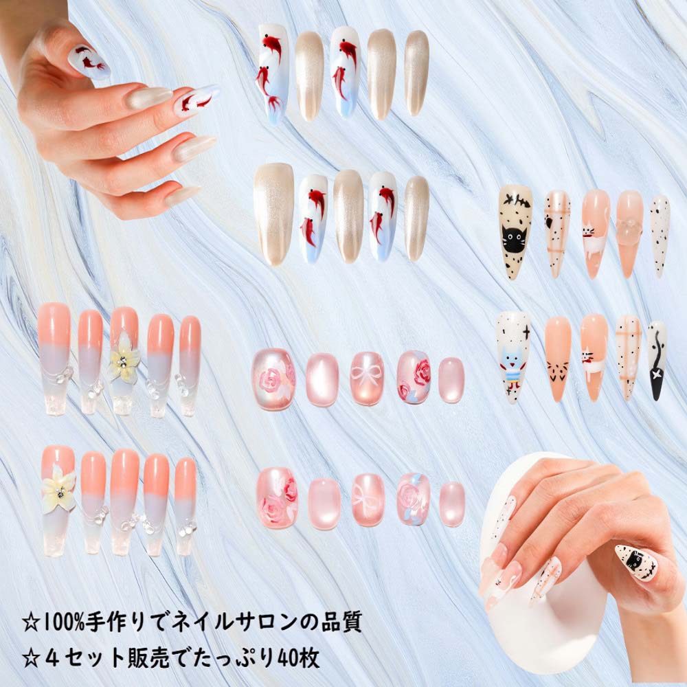 ネイルチップ 4個セット 秋冬 ネイルチップ 人気 和風 かわいい シンプル 人気 女性おしゃれな 上級 成人式 入学式 卒業式 結婚式 パーティー 日常生活 花嫁ネイル 光沢 つけ爪 MJP-02
