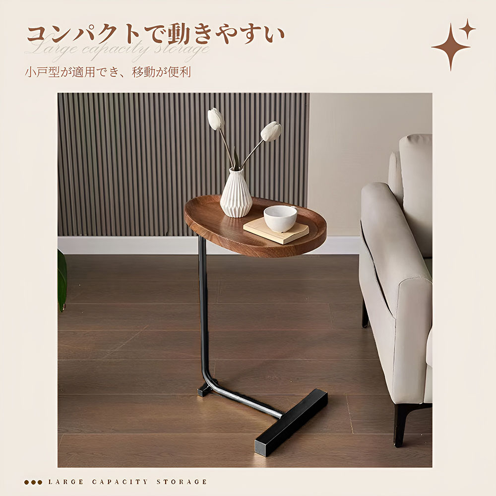 天板の角が丸く加工されているので、角をが痛くて使いにくいといった心配はありません。ソファに差し込めるから、座りながらのティータイムも快適に過ごせる。ソファやベッド、テーブルの傍らに。いつもそばに置いておきたい、様々なシーンで役立つサイドテーブル。