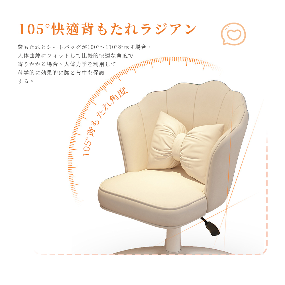 コロンとした形がかわいいオフィスチェアパンナ。目を引くキルティング加工がポイントです。丸みを帯びたデザインでコンパクトながらも、優しい曲線が身体にフィットします。