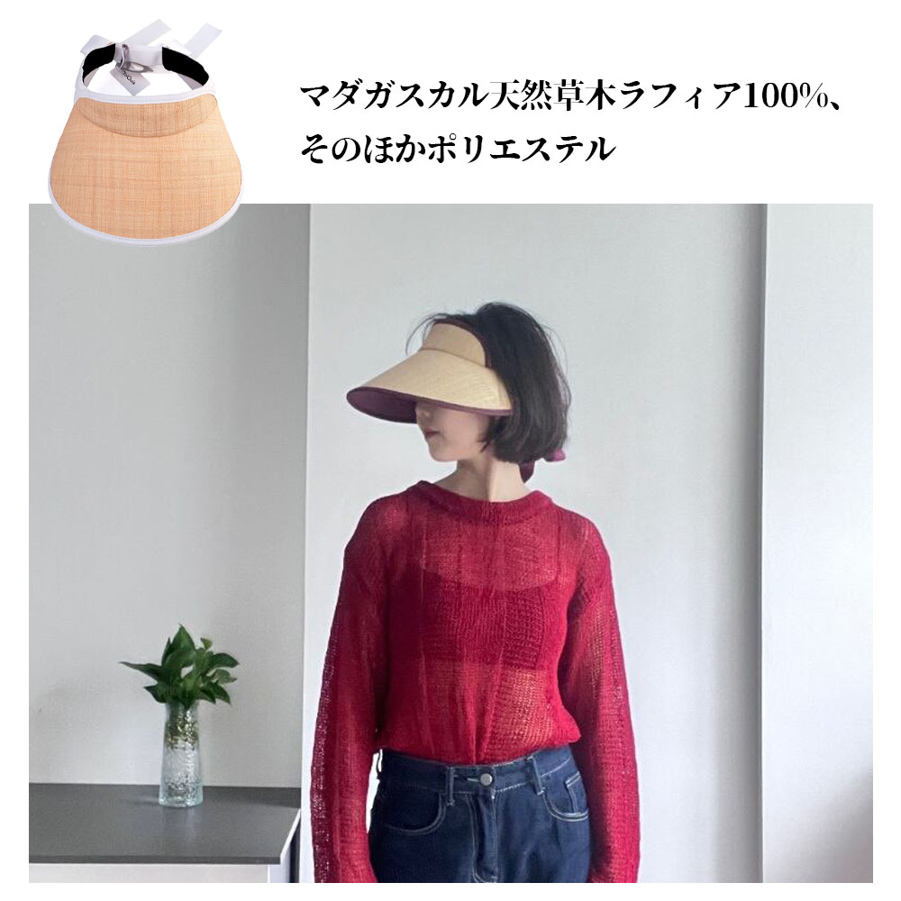 人懐っこいバイザー手編み職人技による非常に細かい1cm5目の高密度編みColor:パープルMaterial:マダガスカル天然草木ラフィア100%、そのほかポリエステルSize:フリーサイズ(56-58cm)企画デザイン:JAPAN製造国:中国