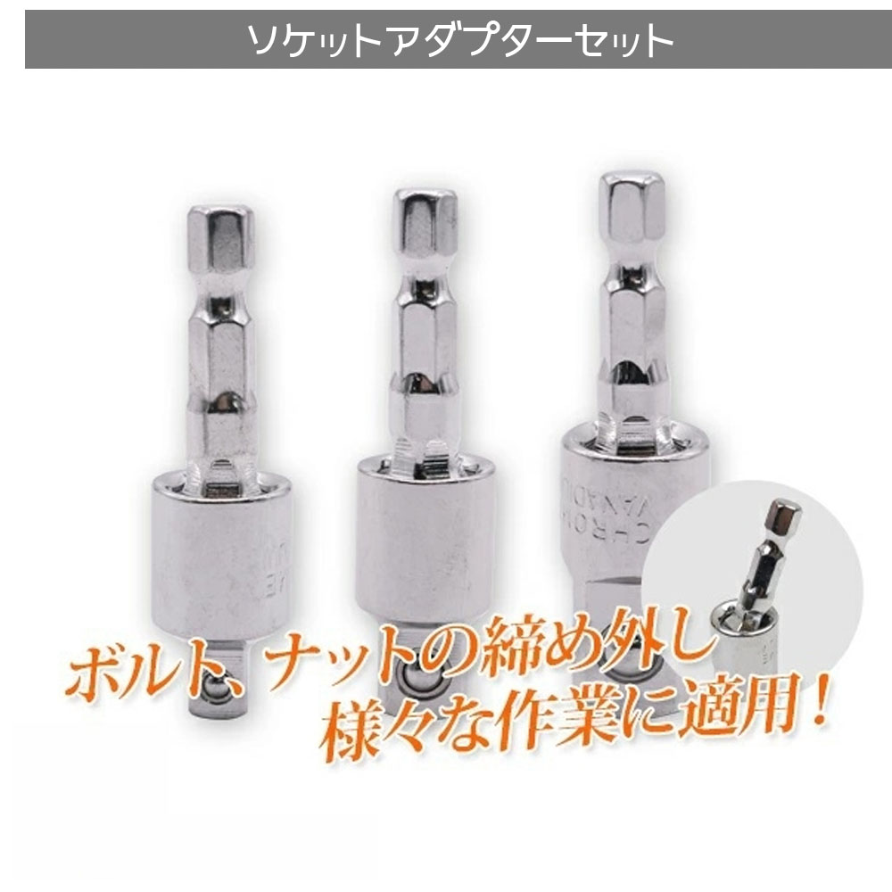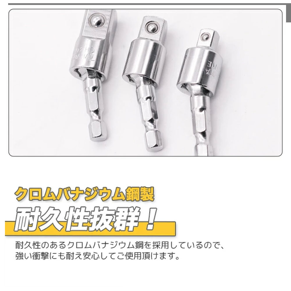 3本セットになっており、それぞれソケットレンチのオス側への変換を行います。