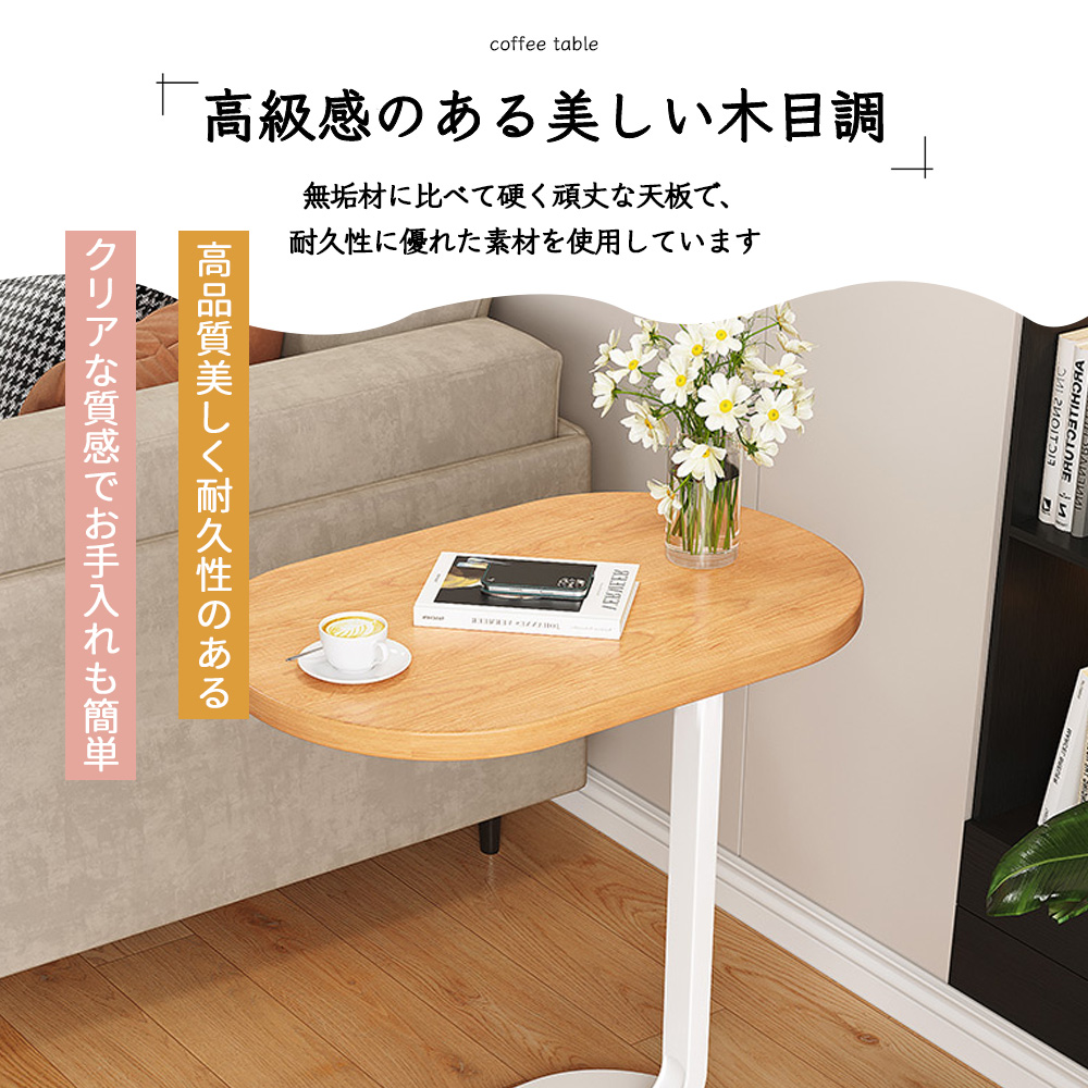 【コの字型デザインでフィット】ソファに差し込めるから、座りながらのティータイムも快適に過ごせる。