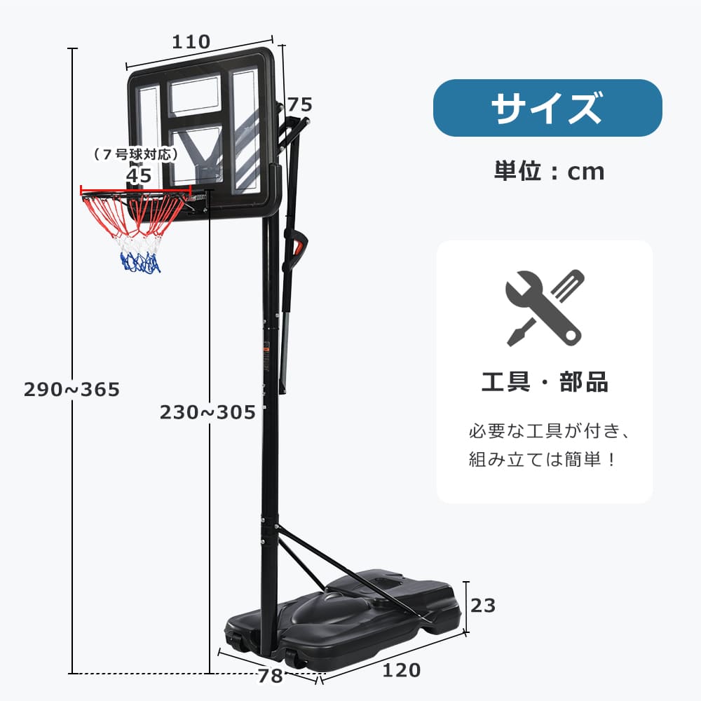 | 備考 | ●ボードを含めた高さ:約2.9m~3.65m ※天井高が上記サイズ以下の場所では使用・保管が出来ません。 必ず事前にご確認ください。 ●組立式※日本語組立説明書付き ●ベースタンクに水もしくは砂を入れて使用ください。(170kg相当の砂、及び105L相当の水が目安) ●凍結の可能性がある場所では砂を使用ください。 ●移動用ローラー付き |