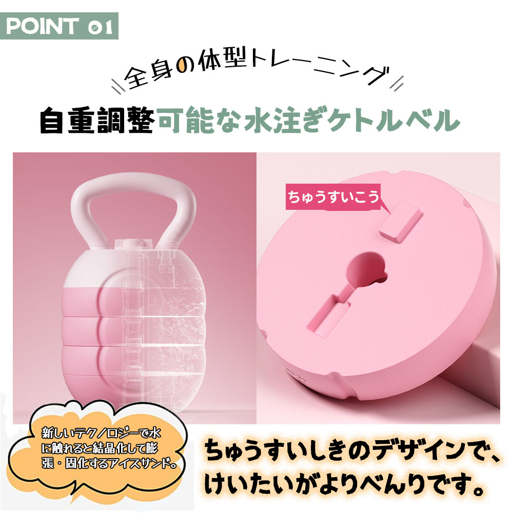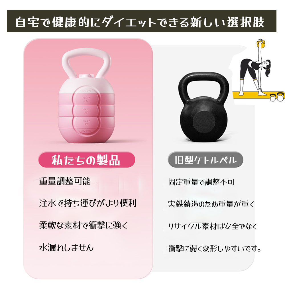 【可変式ケトルベル】調節可能なケトルベルは使いやすく、トレーニングレベルに合わせて重量を調節できます。水を入れることで重量を調整できるため、さまざまなフィットネスグレードのユーザーに適しており、優れたトレーニング体験を保証します。