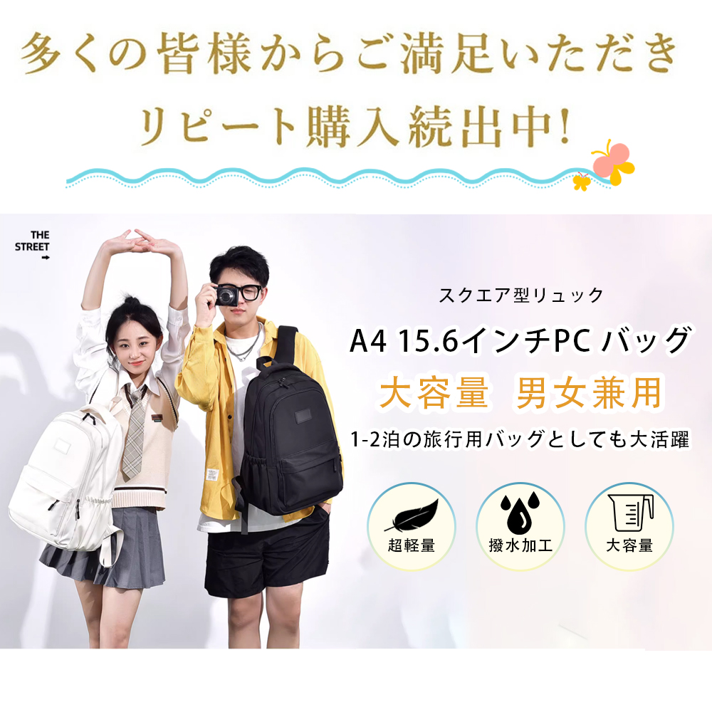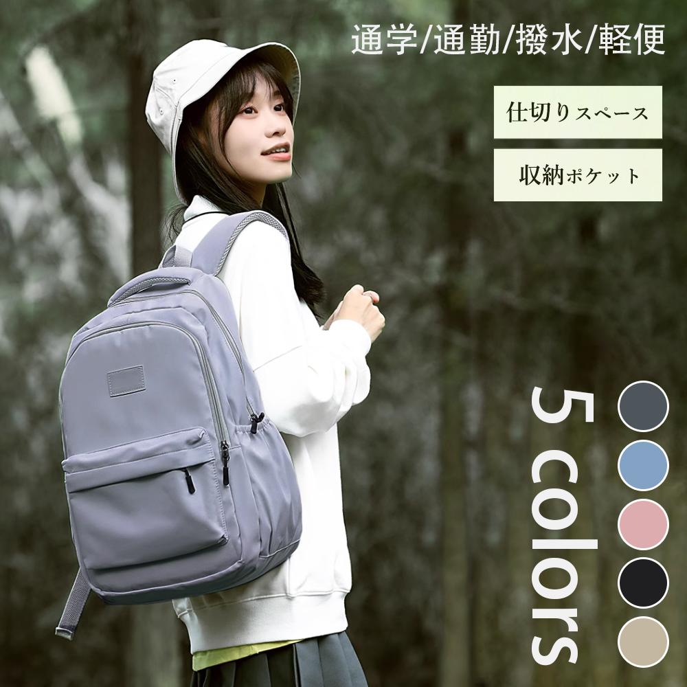 【軽量で大容量】収納力は十分にあり。A4サイズ、PC、教科書、傘、衣類、飲み物、お弁当、重い荷物を入れても安心感あり。軽くて機能的。毎日使いたくなるバックパック。サッと取り出して、スマートに時短。