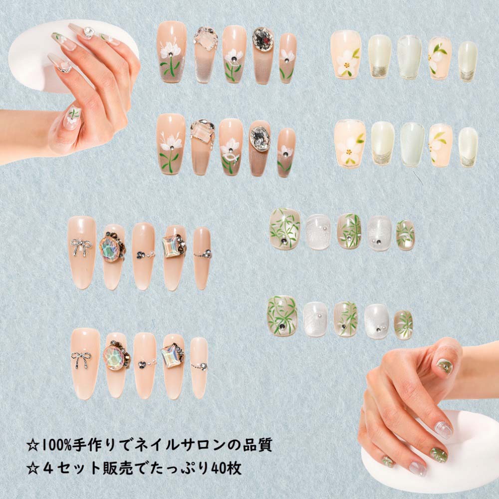 ネイルチップ 4個セット 秋冬 ネイルチップ 人気 和風 かわいい シンプル 人気 女性おしゃれな 上級 成人式 入学式 卒業式 結婚式 パーティー 日常生活 花嫁ネイル 光沢 つけ爪MJP-03
