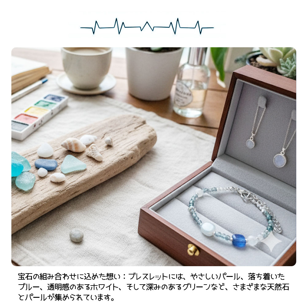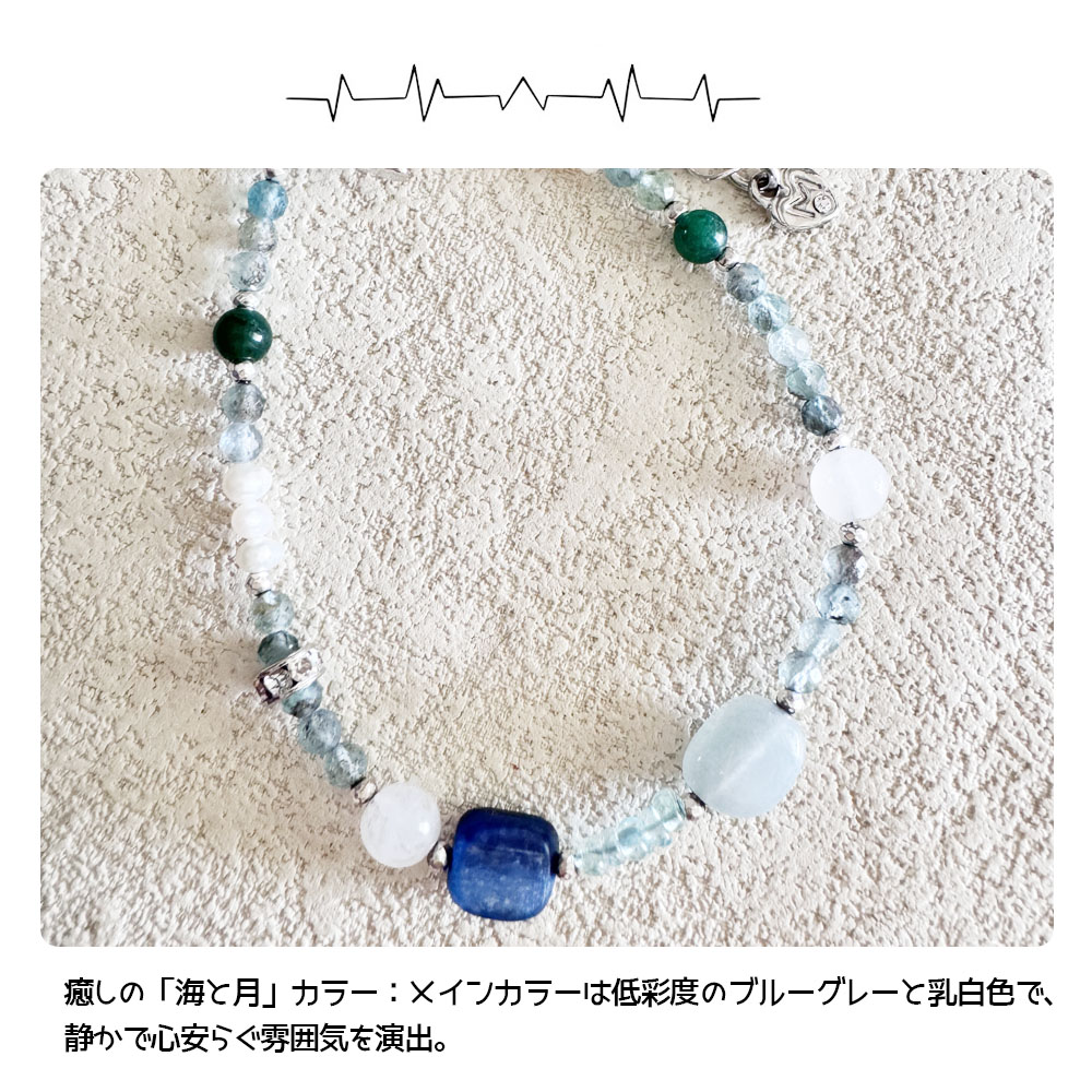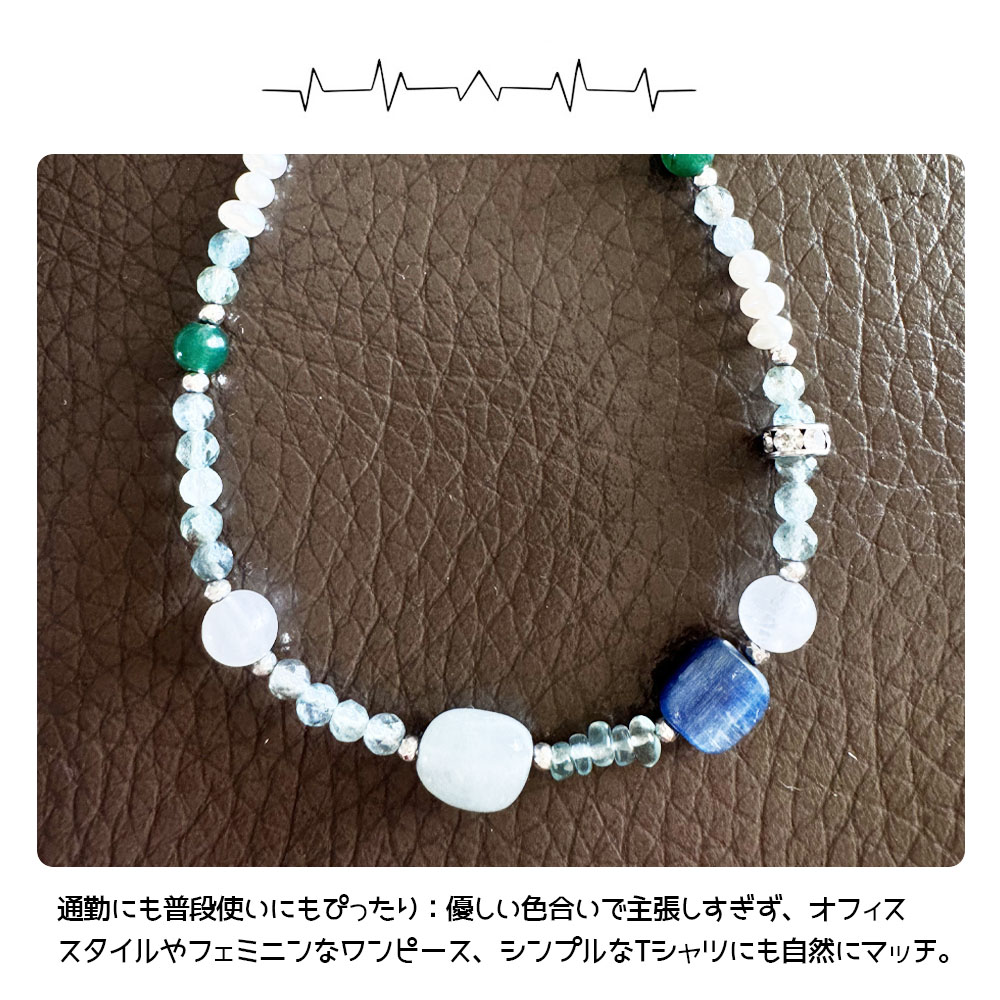 天然石使用:上質な天然石を使用した、ひとつひとつ異なる表情が楽しめるブレスレット。