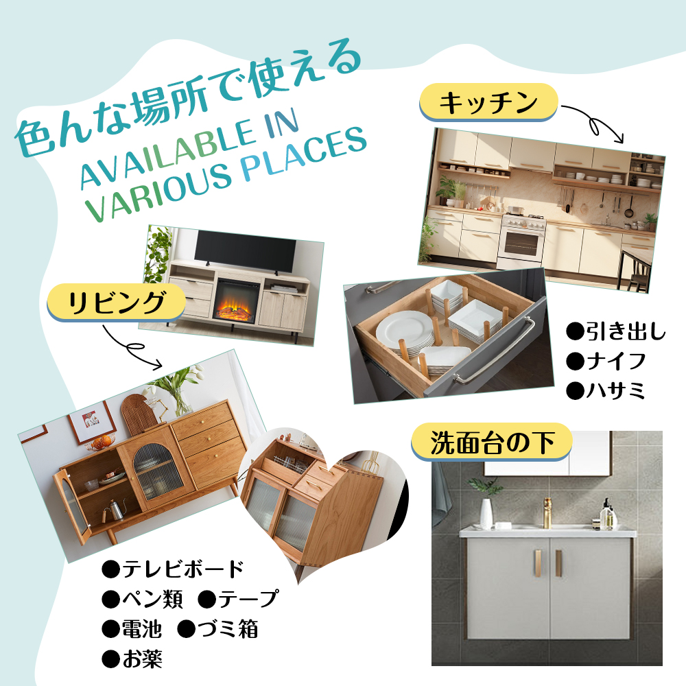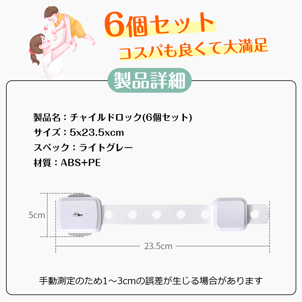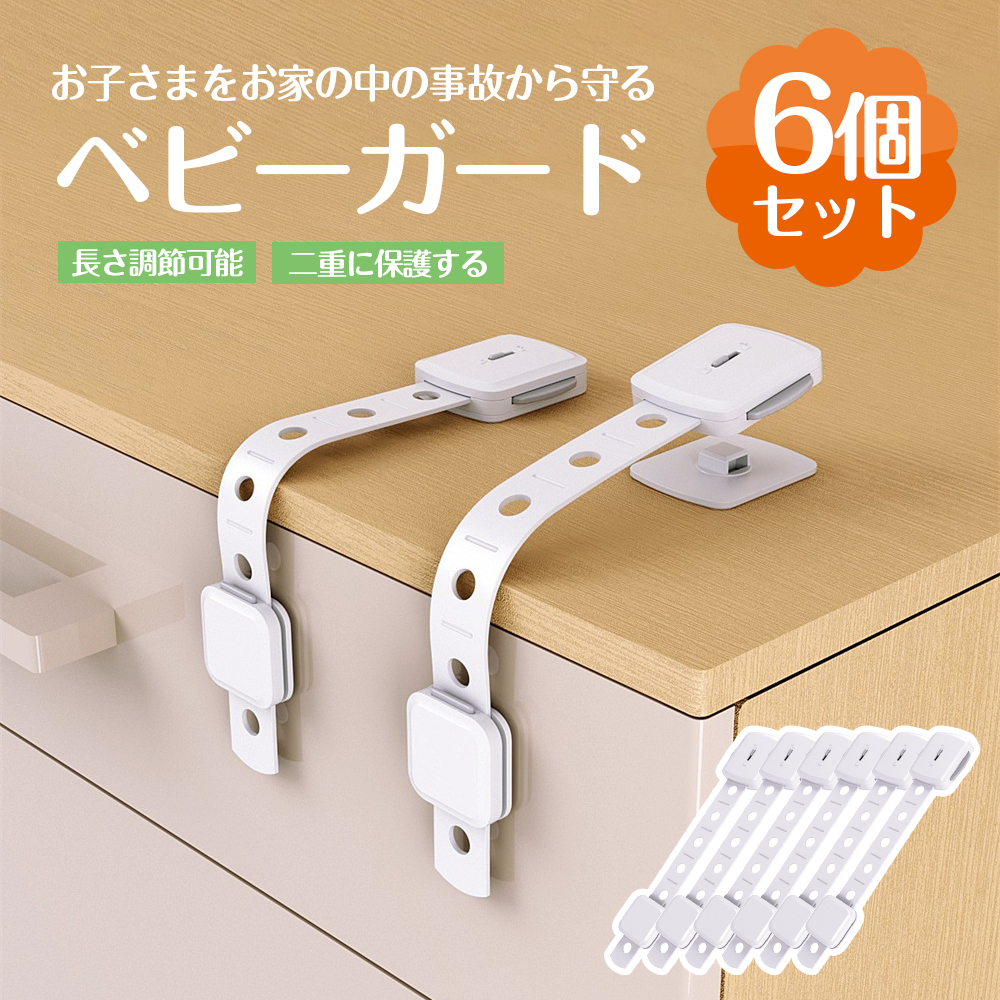 【お得なベビーガード6個セット】 お子さまにとってお家の中のものは興味津々。 家具の引き出し、収納ボックス、キッチンの収納扉、冷蔵庫などなど、あちこち触って遊びたくなります。でも、お子さまにとって引き出しや扉は、指を挟んだり、頭をぶつけたりと危険がいっぱい。 中に収納しているものも、お子さまにとっては危険になることがあります。 特にキッチンは危険なものが多く注意が必要になります。 ベビーガードなら簡単に扉をロックでき、扉を開けたい時にはパチンと外すだけの簡単設計です。 【簡単に設置が可能】 3Mの強力な両面テープで接着。 工具など不要でお好きなところに簡単に貼り付けが可能です。 取り外したい時はドライヤーの熱をあてるときれいに剥がれます。 ※接着の際は汚れ、ほこり、油分、水分などをふき取ってから貼り付けてください。 【片手でのロック解除】 南京錠などを使用するとしっかりとロックされますが、開ける際にどうしても時間が掛かってしまいます。 ベビーガードなら、スライド式のロックを解除すれば簡単にストッパーが外れます。 大人なら片手でも外れるのでストレスなくお使いいただけます。 |