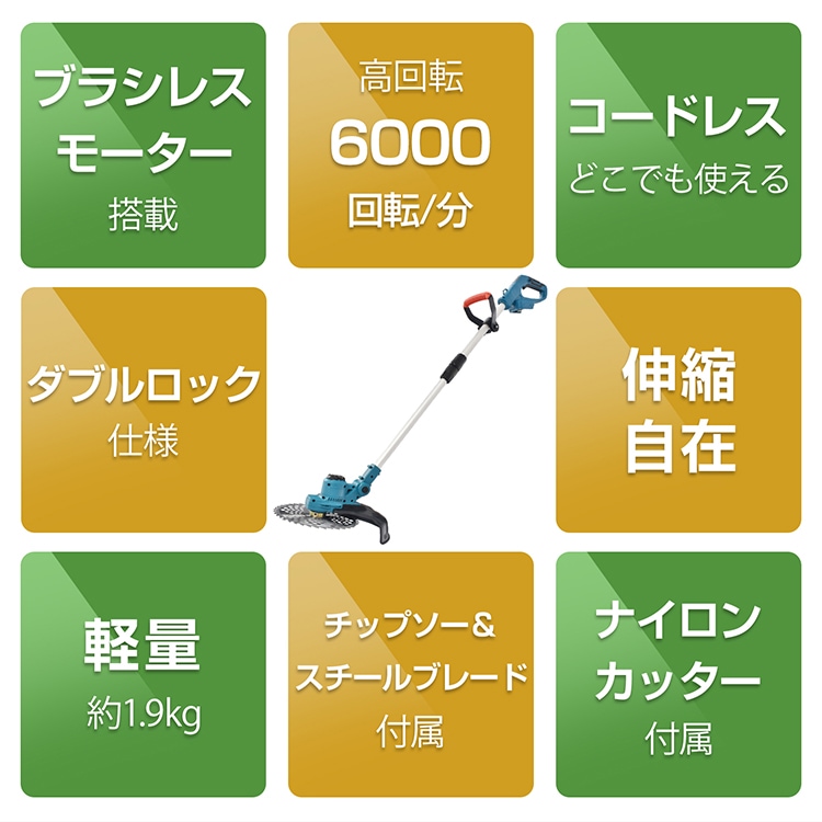 ■パワフルなのに軽量!ブラシレスモーター搭載の電動草刈機