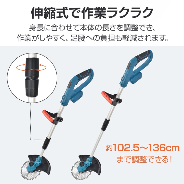 電動草刈機 6000回転/分 肩掛けバンド付き 4種類の替え刃付き 角度3段階 伸縮自在 ダプルロック 軽量 安心安全 芝生 草刈り 雑草 gd011