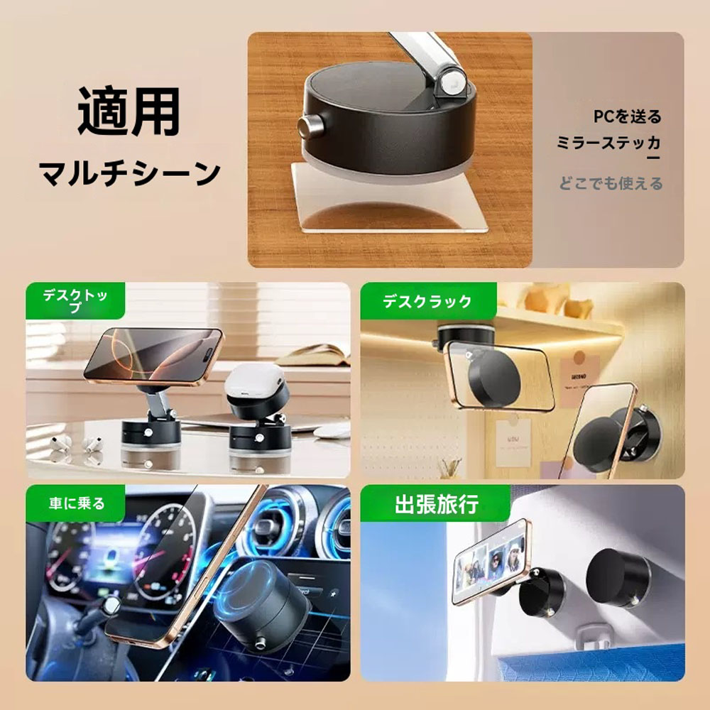 磁石吸着設計:スマホをしっかり固定、落下防止。