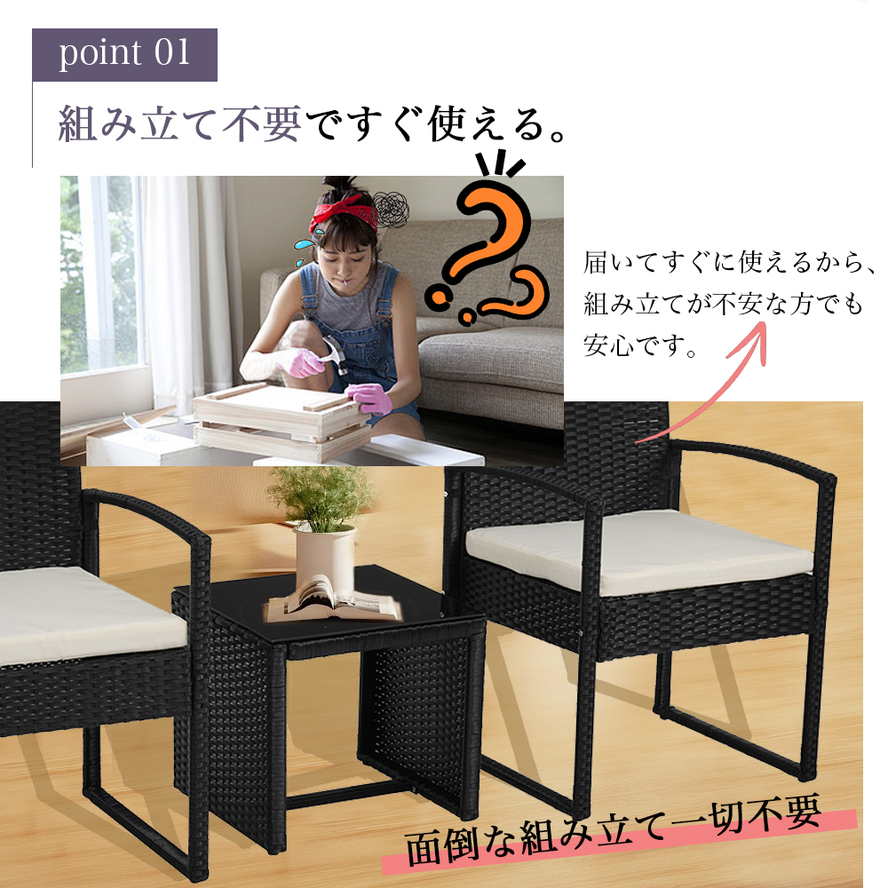 ◆ 03ゆったり過ごせるデザイン テ一プルの幅が43cmがあり、 ワインや本などちょっとしたものを置く場所としてぴったり! 背の低いデザインで圧迫感なく空間を広く見せることができます。 極厚な座面クッションと絶妙な高さが極上のリラックスを与えます。