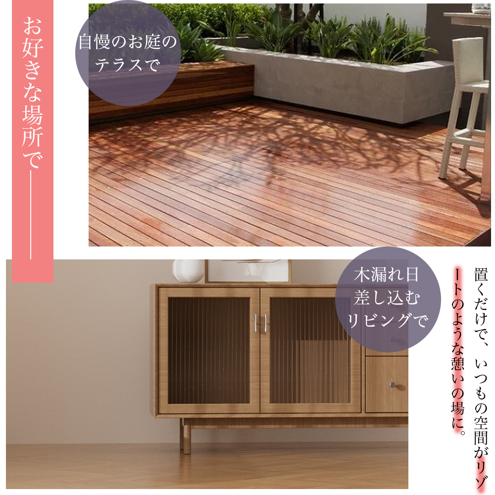 ◆ 05屋外·屋内使用可能 高い耐候性と洗練されたデザインなので、屋外使用はもちろん、室内でも気兼ねなく使えます。