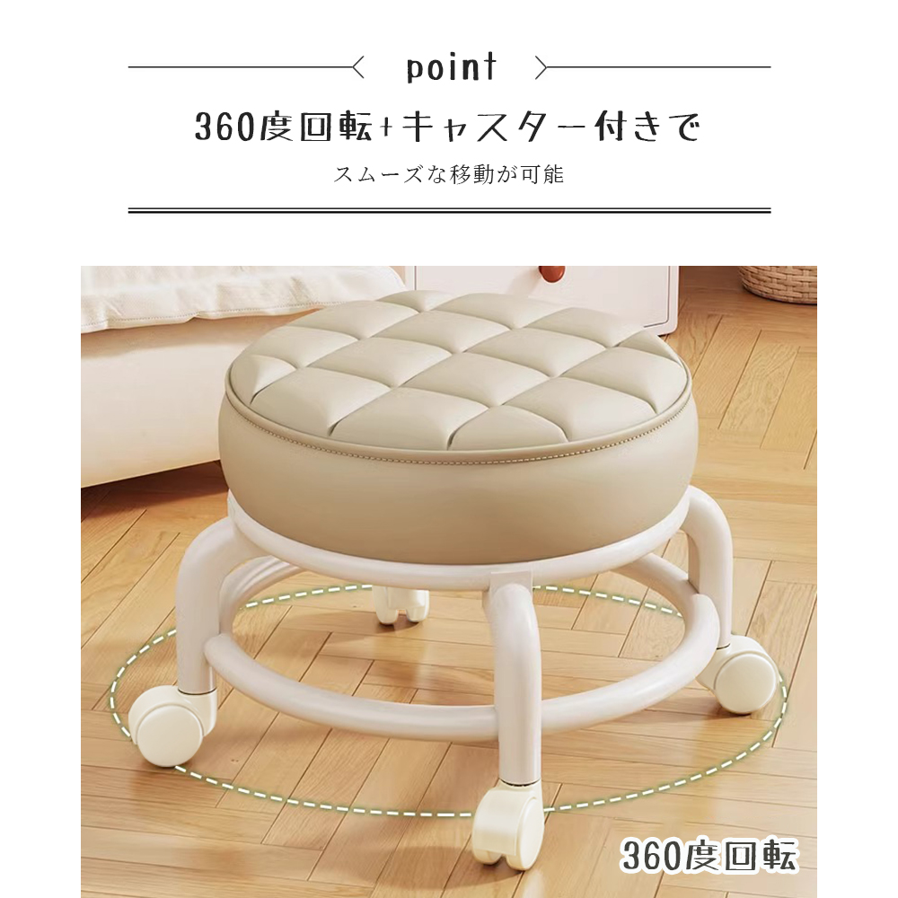 スツール おしゃれ 作業椅子 低い丸椅子 イス チェア ラウンドチェア ラウンドスツール ダイニングチェア 北欧 カフェ風 回転椅子 キャスター付き 丸椅子 C-72