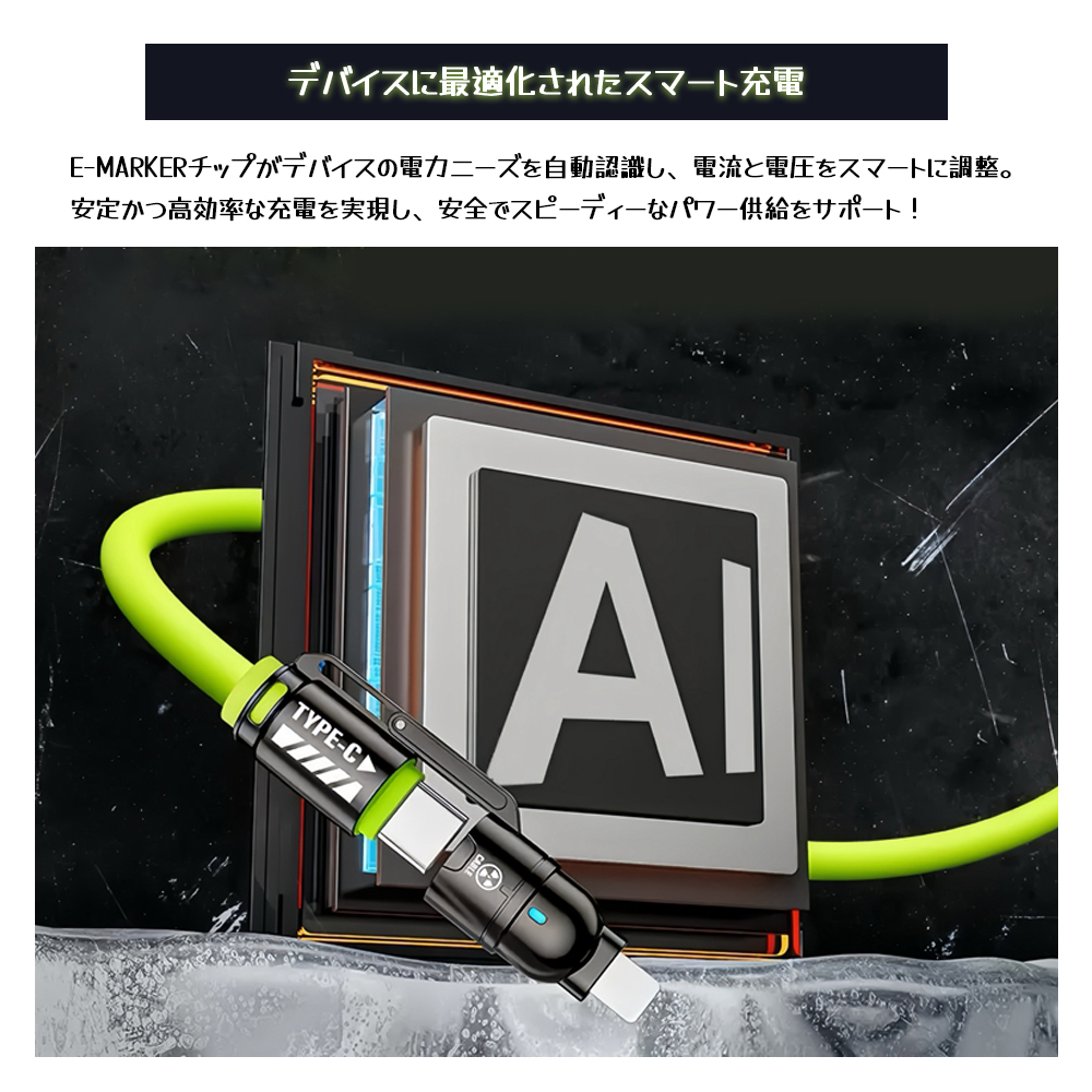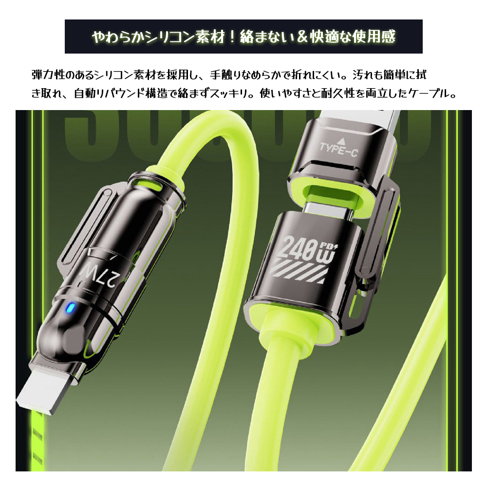 充電ケーブル マルチ充電ケーブル 充電コード ライトニング充電コード 1.2m 4in1 最大 240W 高速充電 Lighting Type-C 過熱防止 スマホ ノートパソコン 旅行 出張 SJX